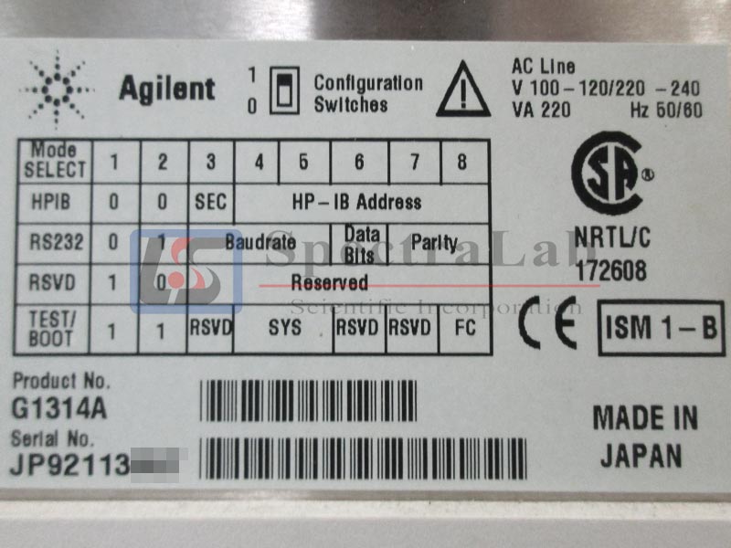 Agilent 1100 HPLC G1314A VWD Detector JP92113XXX