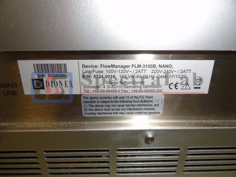 This Dionex Ultimate 3000 FLM-3100B Flow Manager (Nano) is in great condition. It has been tested at SpectraLab Scientific.