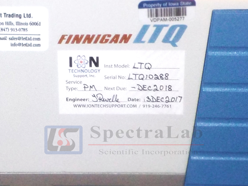 This Thermo Scientific LTQ has been fully refurbished and tested here at SpectraLab Scientific. Includes suitable software and vacuum pump.