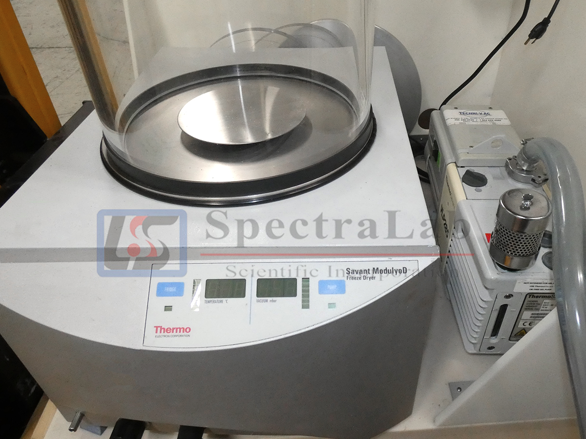 This Thermo Savant ModulyoD Benchtop Freeze Dryer was taken from a working lab. It can reach temperatures as low as -50C. We do have pump, platform and other supplies for this Dryer.